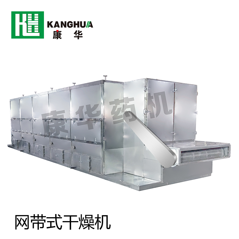 網(wǎng)帶式干燥機(jī)工作時(shí),冷空氣通過(guò)熱交換器進(jìn)行加熱,采用科學(xué)合理循環(huán)方式,使熱空氣穿流通過(guò)網(wǎng)帶上的被干燥物料進(jìn)行均勻的熱質(zhì)交換,整機(jī)各單元內(nèi)熱氣流在循環(huán)風(fēng)機(jī)的作用下進(jìn)行熱風(fēng)循環(huán),排出低溫高濕度的空氣。平穩(wěn)高效地完成整個(gè)干燥過(guò)程。