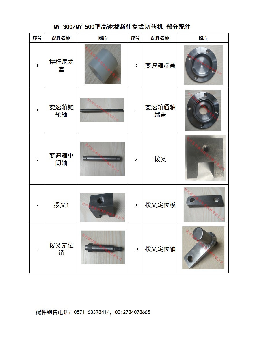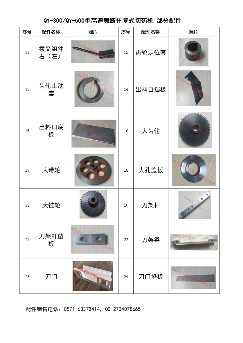 QY-300/QY-500高速裁斷往復式切藥機 配件